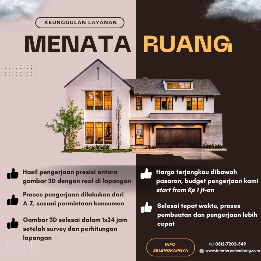 Wujudkan ruang impian Anda bersama jasa interior Palembang terpercaya yang mengutamakan kualitas, ketepatan waktu, dan hasil berkelas. Menata Ruang hadir sebagai solusi interior profesional untuk rumah, cafe, dan kantor di Palembang dengan standar pengerjaan yang rapi, amanah, dan terukur.